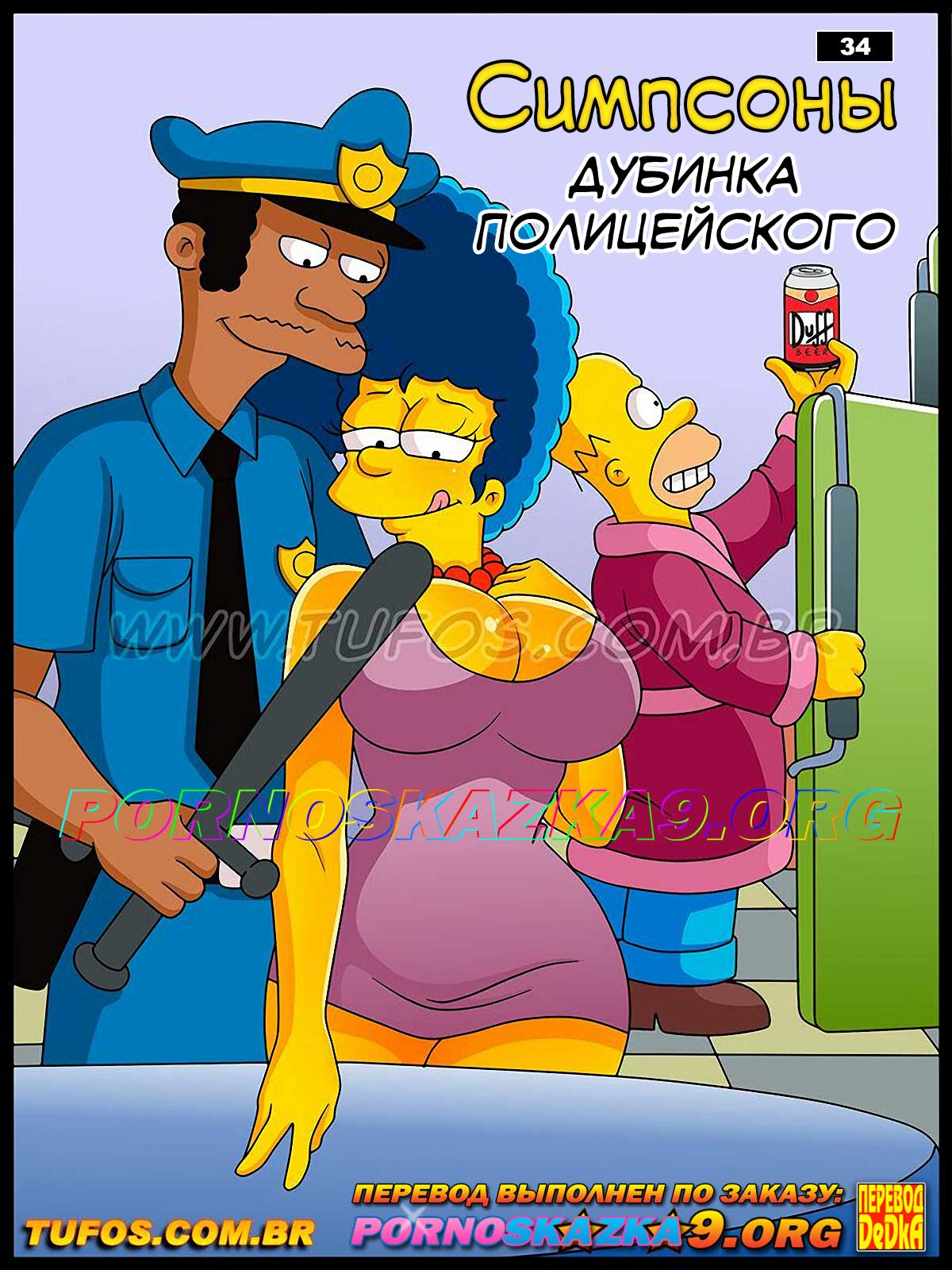 Едва Гомер уснул, как тут же проснулся от жажды. Он пришел на кухню попить водички и увидел там полуголую Мардж и дубинку полицейского на...